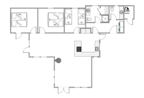 Wellness og velvære er bestemt to nøgleord i sommerhusets indretning. På feriehusets store badeværelse er der integreret en lækker infrarød sauna, hvor I kan få varmen efter en forfriskende gåtur i den vestjyske natur – og bare lade batterierne op langt væk fra den travle hverdag.