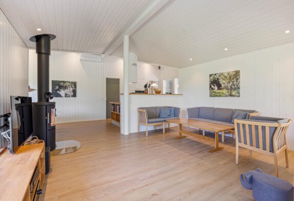 Blandt de helt klassiske faciliteter finder I blandt andet brændeovnen, som med sine knitrende flammer sætter prikken over i’et i hyggelig feriestemning. Feriehuset er desuden udstyret med en energibesparende varmepumpe, som sikrer jer et behageligt rumklima året rundt.