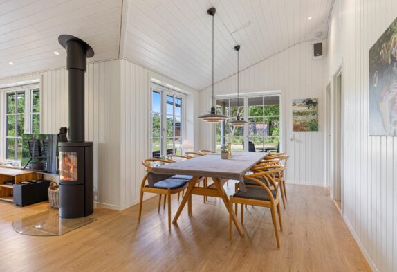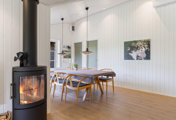 Velafstemt kombination af moderne og klassisk – med brændeovn og varmepumpe