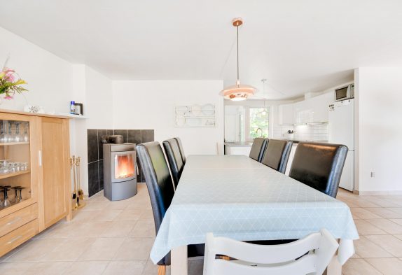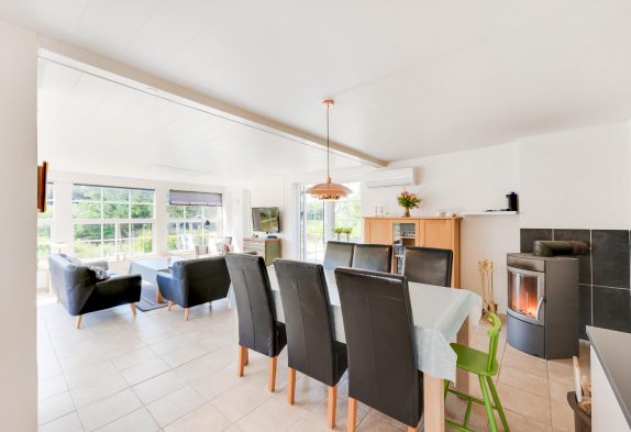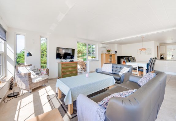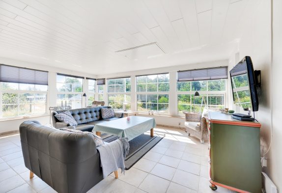 Foruden de 2 badeværelser er der 4 soveværelser og ét stort opholdsrum i sommerhuset. I opholdsrummet vil I helt sikkert komme til at tilbringe mange skønne timer sammen med lækker mad, gode spil og sjove film. Der er ikke dansk tv udover en google cromecast som I naturligvis kan caste fra(DR gratis)! Som prikken over i’et kan I tænde op i pejsen, der fuldender sommerhusstemningen.