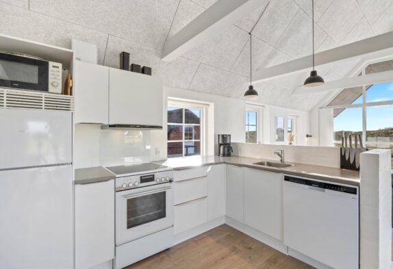 Lavenergihuset opvarmes med jordvarme, så I ikke behøver bekymre jer om forbrugsomkostningerne på jeres ferie. Der er sørget for masser af komfort i sommerhuset. Både de 2 badeværelser, alrummet og soveværelserne er udstyret med gulvvarme. Fra det ene badeværelse har I adgang til saunaen – det perfekte sted at søge hen, når batterierne skal lades op, eller I skal have varmen igen efter en forfriskende gåtur ved havet.