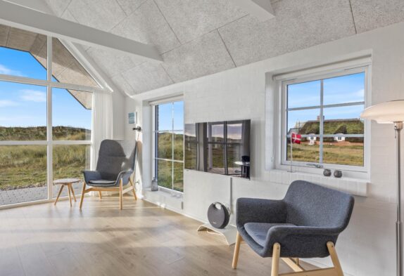 Det lyse sommerhus ligger på Nordsø Ferievej 39 og blev bygget i 2021. Sommerhuset ligger i udkanten af heden og har en skøn udsigt til den omkringliggende natur. Her er der plads til 6 personer, som takket være de 2 badeværelser og de 3 soveværelser, passer perfekt til en ferie for vennepar eller hele familie. Her er der et præg af luksus, med egen sauna og mulighed for at nyde lidt ekstra wellness på ferien.