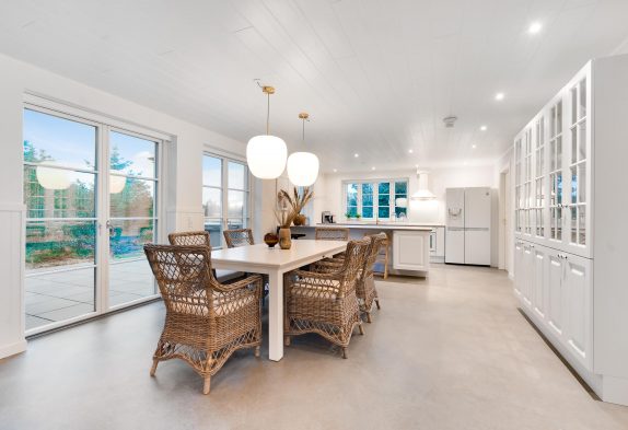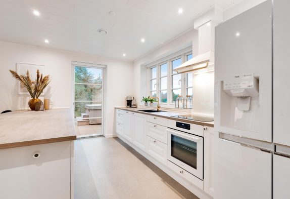 Den moderne indretning byder velkommen til 8 personer og 1 hund, og de 190 kvadratmeter fordeler sig på 4 gode soveværelser, 2 badeværelser med gulvvarme og et stort lyst køkken alrum. I køkkenet finder du bl.a. en Nespresso-maskine, og indretningen råder ligeledes over alle praktiske nødvendigheder i form af vaskemaskine, tørretumbler og opvaskemaskine.