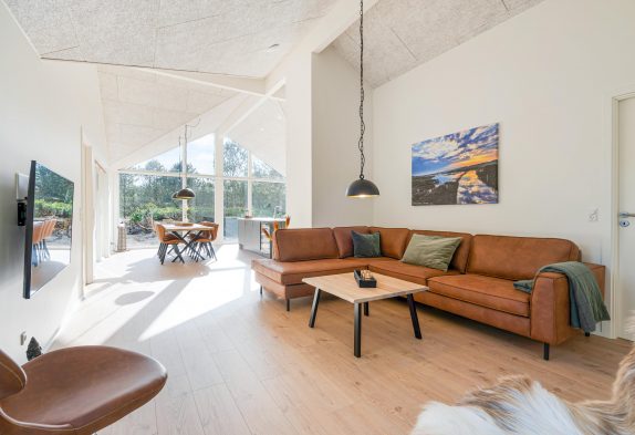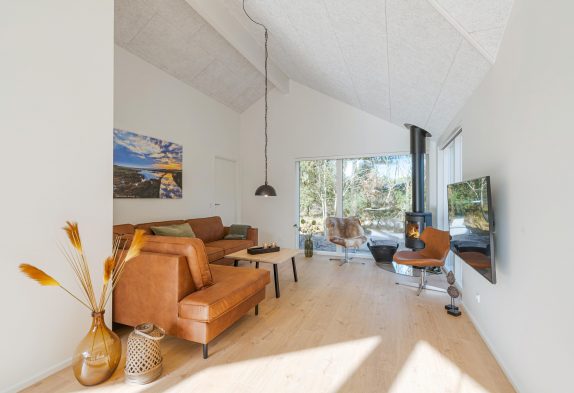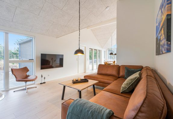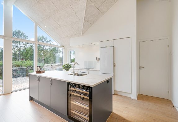 Det store feriehus på Kollemarken 30 er opført i 2021 i flotte kvalitetsmaterialer, og den stilfulde indretning fungerer som rød tråd fra ende til anden. Med hele 148 kvadratmeter at brede sig ud på, har I god plads til at tage hele familien eller venneflokken med på en luksuriøs ferie.