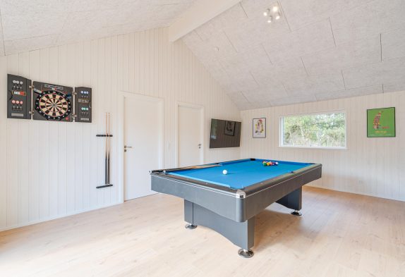 Feriehuset gemmer på masser af højdepunkter, og her bliver alle interesser mødt: Således kan de aktive feriegæster byde hinanden op til et spil billard eller bordtennis, mens de resterende tager en slapper på sofaen – måske med et godt glas rødvin og brændeovnens knitren i baggrunden. Alternativt er der også dart at underholde sig med.