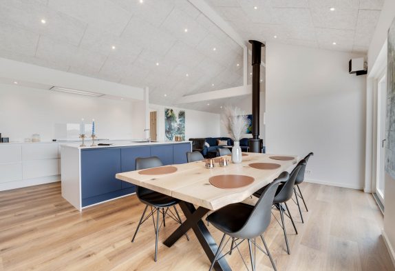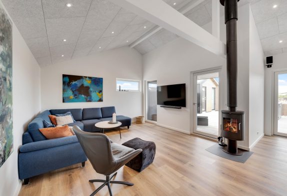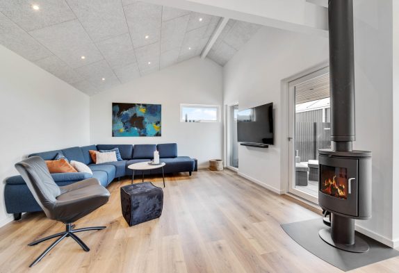 Moderne sommerhus til seks personer med stilfuld indretning, brændeovn og gasgrill