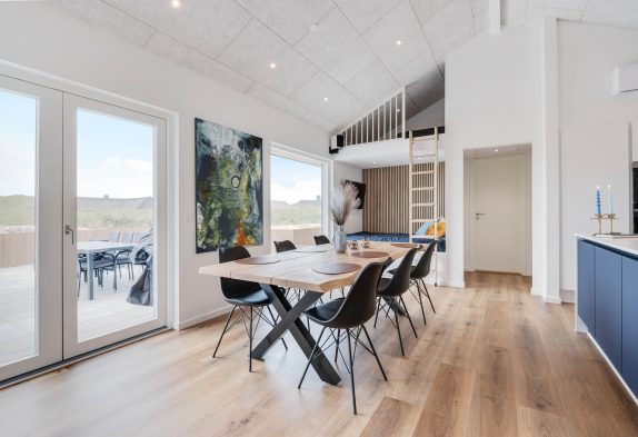 Kun få minutters gang fra den nærmeste strandopgang i Søndervig ligger denne skønne ferieperle. Sommerhusets stilfulde omgivelser rummer plads til seks personer, og den store lukkede terrasse inviterer til masser af wellness med udespa. Der er installeret et kraftstik ved feriehuset, hvis I ankommer med el-bil, så I uden problemer kan lade bilen op efter en dejlig dag.