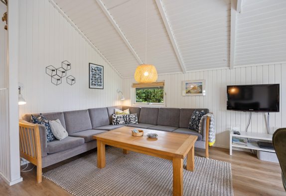 Overalt er loftet åbent til kip, hvilket skaber en dejlig, luftig atmosfære. Sommerhusets 6 sovepladser er fordelt på tre soveværelser, alle med god opbevaringsplads, så I ikke skal bo i jeres kufferter og i stedet kan føle jer godt hjemme, når I holder ferie.