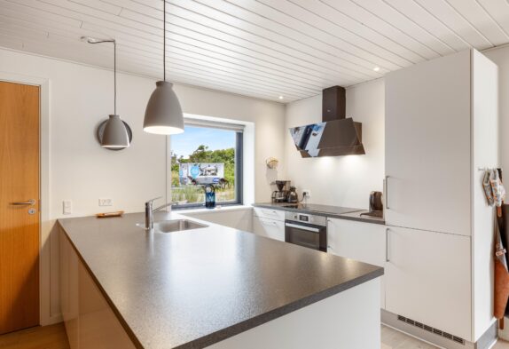 Fjernsynet er udstyret med Chromecast, så I kan streame alt det, I lyster, med hjælp fra feriehusets hurtige og stabile internetforbindelse. En energivenlig varmepumpe sikrer jer et godt rumklima hele året rundt, og alle hverdagens praktiske hjælpere er på plads i indretningen.