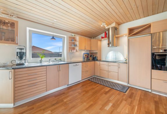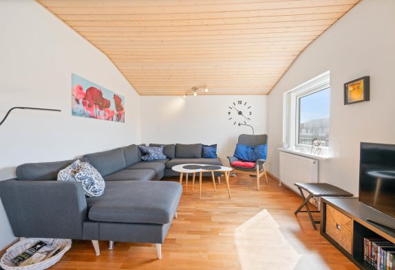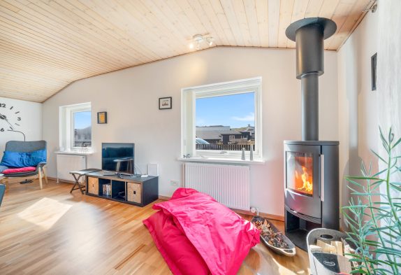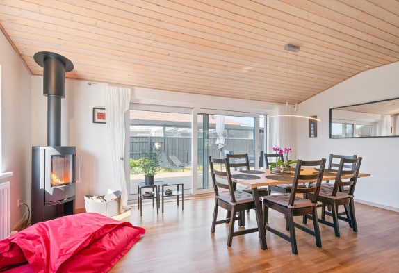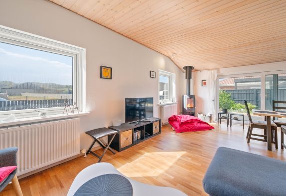 På Stormgade 55 i Hvide Sande ligger dette fine 8-personers feriehus på 155 m2, som er blevet renoveret i 2020. I sommerhuset finder du et veludstyret køkken med god plads til madlavningen efter en oplevelsesrig dag i Hvide Sande. I opholdsstuen er der lagt op til hygge på sofaen eller spil ved spisebordet, imens I får varmen fra brændeovnen. Fra opholdsstuen er der også udgang til den lukkede terrasse, hvor man kan nyde et lækkert grillmåltid eller spille kort i ly for vinden.
