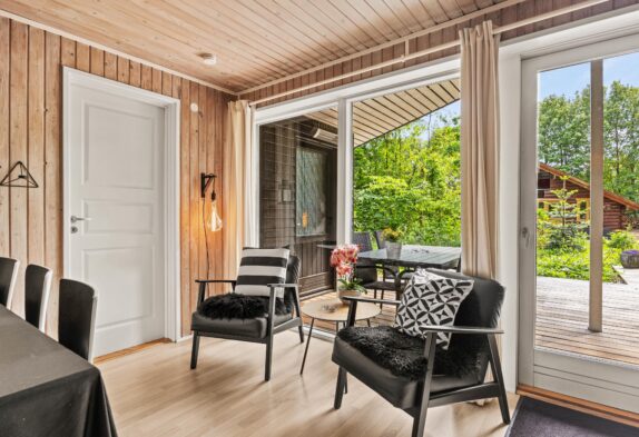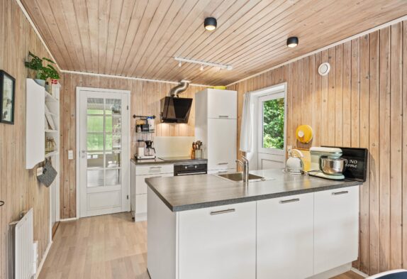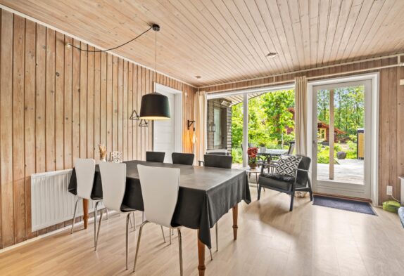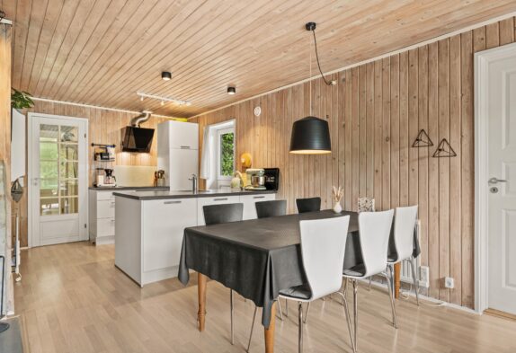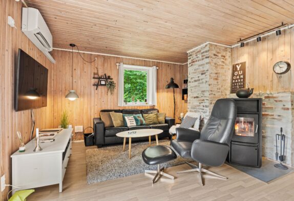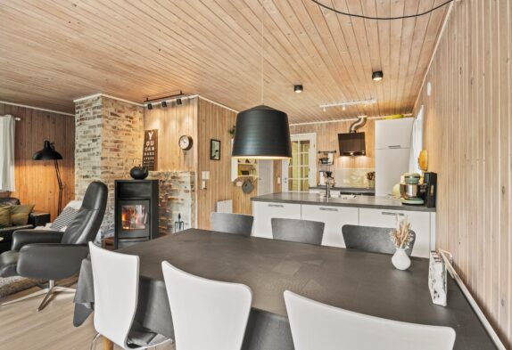 Opholdsstuen er perfekt til hyggelige feriestunder for hele familien. Vær sammen om madlavningen, sær jer omkring bordet med et sjovt spil, eller læn jer tilbage i sofaerne og stream en god film i tv’et via Chromecasten. Brændeovnen fuldender feriestemningen med dens knitren og varme – ellers sørger en energivenlig varmepumpe for et godt indeklima.