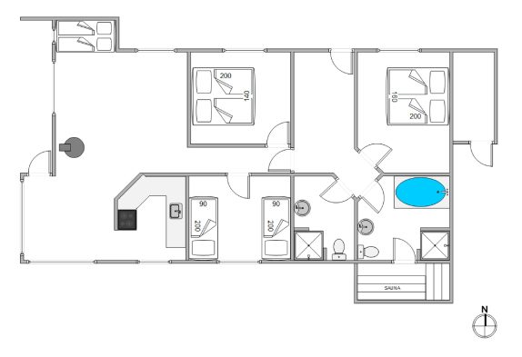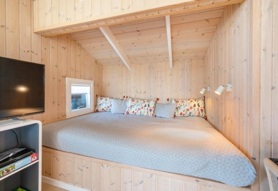 I opholdsstuen finder I to sovepladser i den hyggelige alkove. De resterende seks sovepladser er fordelt på sommerhusets tre soveværelser – to med dobbeltseng og et med enkeltsenge. Med to badeværelser er der ingen risiko for, at I skal begynde dagen med kolde fødder.