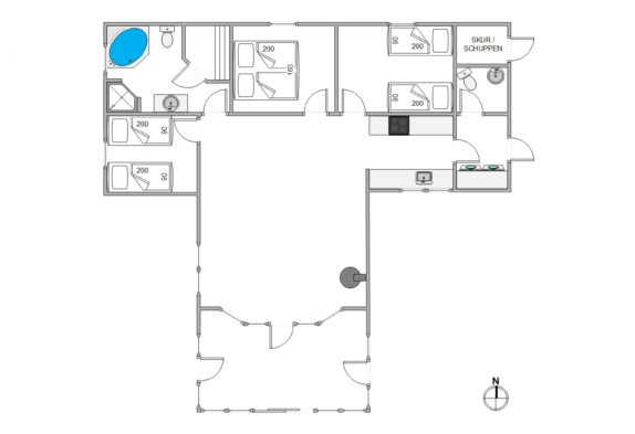 I sommerhuset er der ingen risiko for kødannelse til toilettet – her har I nemlig både et badeværelse og et gæstetoilet. På badeværelset kan I også holde en wellness-session i spaen og saunaen – der er garanti for masser af afslapning.