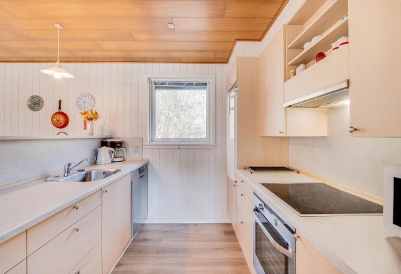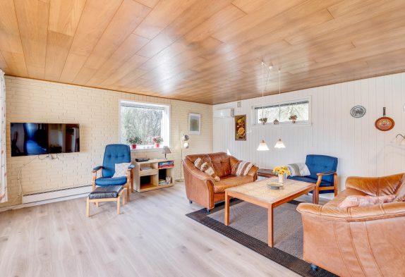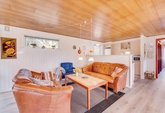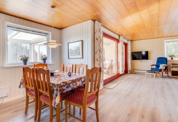 | Drømmer I om en ferie med vaskeægte nostalgisk sommerhusatmosfære, så er sommerhuset på Tambjergvej 10 i Lodbjerg Hede det helt rigtige valg for jer. Her er der plads til 6 personer og 1 hund i det charmerende sommerhus, der emmer af nostalgi og gode barndomsminder. Sommerhuset er indrettet med en praktisk udestue, så I kan forlænge sommerens hyggelige aftener langt ud på sæsonen. Hold ferie i barndommens land på Tambjergvej 10Det charmerende sommerhus i Lodbjerg Hede er indbegrebet af hyggelig sommerhusstemning. Her kan I slappe af i de bløde sofaer, der kalder på at blive indtaget til boglæsning eller en lille lur. Sofagruppen har direkte udsyn til den hyggelige udestue, der er ideel til at nyde morgenens første kop kaffe. Sommerhuset bliver opvarmet af en energibesparende luft-til-luft varmepumpe, og sommerhuset er blevet ekstra isoleret på loftet, så der holdes bedre på varmen. Vægge såvel som loft er beklædt med paneler, der bidrager til en rolig og huleagtig atmosfære, som vil bekomme de fleste vel. Huset føles trygt og roligt, og jeres puls vil formentlig dykke et par slag under jeres ophold her. Et sommerhus med plads til børneleg i sandkasse og på gyngestativDer er masser af plads til børnenes udfoldelsesmuligheder i sommerhuset på Tambjergvej – både indenfor, men i særdeleshed også udenfor på den store grund. Her har familiens yngste mulighed for at lege i sandkassen, der er praktisk afskærmet. På den måde er børnene i ly for den værste vind. Men også gyngestativet vil formentligt få det brede smil frem på børnene. Der er med andre ord risiko for, at ordene ”Skub mig!” vil lyde som gentagende ekko under jeres ferieophold i Lodbjerg Hede. Oplev Søndervig og Vesterhavet, mens I holder ferie i Lodbjerg HedeSommerhuset på Tambjergvej ligger belejligt, hvis I ønsker at foretage udflugter under jeres ophold. I kan blandt andet opleve Vesterhavets dragende brusen, da det kun ligger 2500 meter fra sommerhuset – en oplagt destination, hvad enten I foretager turen til fods eller på cykel. Men I bør heller ikke snyde jer selv for en tur til feriebyen Søndervig, der kun ligger nogle få minutters kørsel fra beliggenheden i Lodbjerg Hede. Her kan I gå på opdagelse i de lokale butikker og caféer.   |