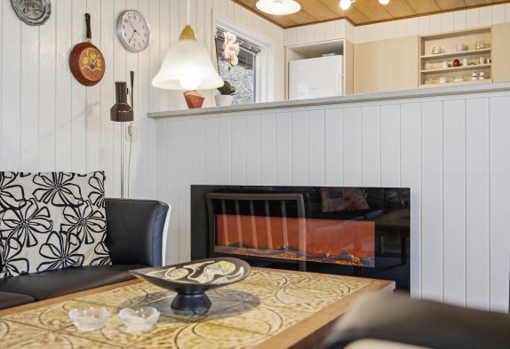Sommerhuset bliver opvarmet af en energibesparende luft-til-luft varmepumpe, og sommerhuset er blevet ekstra isoleret på loftet, så der holdes bedre på varmen.