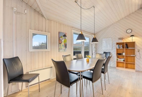 Det hyggelige sommerhus på Mågedalen 59 i Houvig er den perfekte ramme for børnefamiliens ferieplaner. For med spabad og sauna – samt udendørslegeredskaber som gynge, vippe og sandkasse – er der garanti for masser af morskab og tidsfordriv for de mindste. Feriehuset har plads til 8 sovende gæster, så I kan sagtens invitere bedsteforældrene med på ferie. Og tag bare jeres hund med også og benyt jer af den korte afstand til havet på jeres daglige gåture.