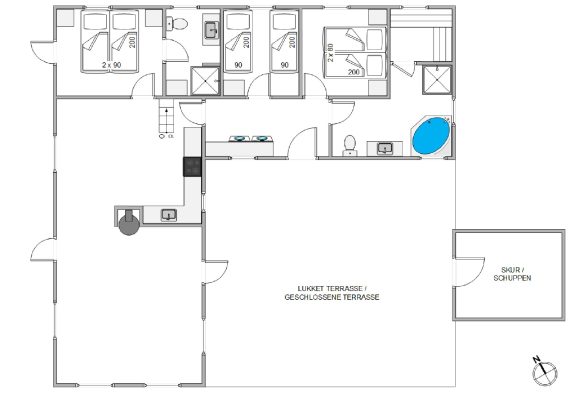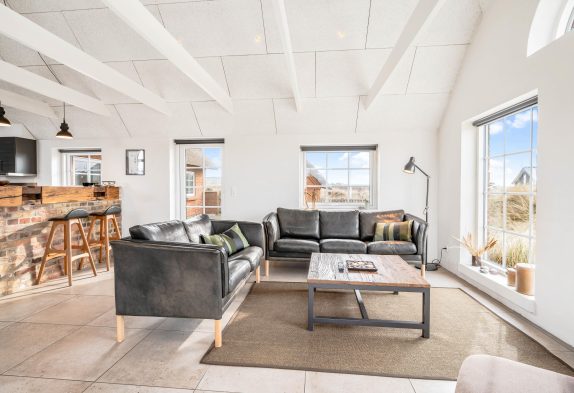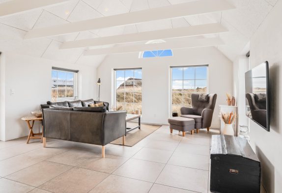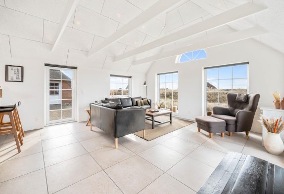Det er ikke uden grund, at sommerhuset i Klegod har indkasseret 5 stjerner. Huset med plads til 6 personer er smagfuldt indrettet med moderne klassikere, der uden tvivl vil høste anerkendende blikke hos de fleste. Samtidig er der kælet for de sjove detaljer og det gode håndværk, såsom fritlagte mursten og synlige bjælker i loftet, så man aldrig mister sommerhusstemningen af syne. Lyset strømmer ind ad vinduerne i denne lille perle i Klegod. Det smukke lysindfald er med til at bringe følelsen af Vesterhavet helt ind i stuen, og blikket bliver naturligt draget mod de åbne vidder, man kan nyde synet af gennem vinduerne. Sommerhuset består af tre lyse værelser med hver to sengepladser. To af værelserne er nydeligt indrettet med behagelige kontinentalsenge og skabsplads, mens det tredje indeholder to enkeltsenge. Oplagt til familiens teenagere.
