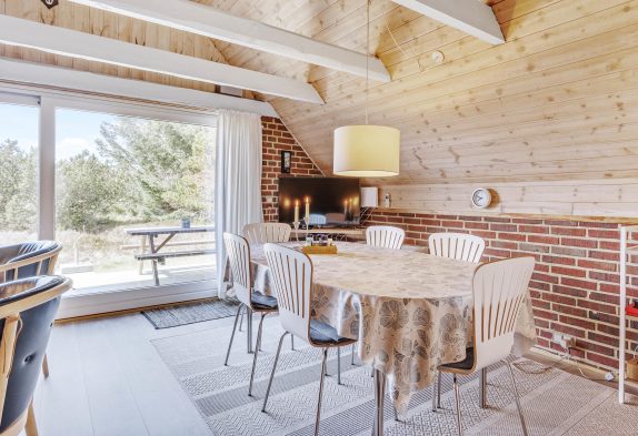 | Hvis I drømmer om en hyggelig ferie med fokus på hygge, nærvær og skønne grønne omgivelser, så er sommerhuset på Brunbjergvej 45 i Lodbjerg Hede helt sikkert et besøg værd for jer. Huset rummer plads til 5 personer og er dermed den perfekte ramme for den lille familie eller kæresteparret. I huset er der også plads til jeres hund, som dog ikke må være i møblerne. Personlig indretning med fokus på hygge og god atmosfæreDet er for alvor dømt sommerhusstemning i det lille stråtækte hus i Lodbjerg Hede. Her føles det som om, tiden står stille, så al hverdagens stress og jag kan forlade kroppen. Og den personlige og hyggelige indretning i sommerhuset står klar til at omfavne jer i dets afslappende atmosfære. Og så vil brændeovnens knitren uden tvivl henføre jer til feriestemning i løbet af nul komma fem.