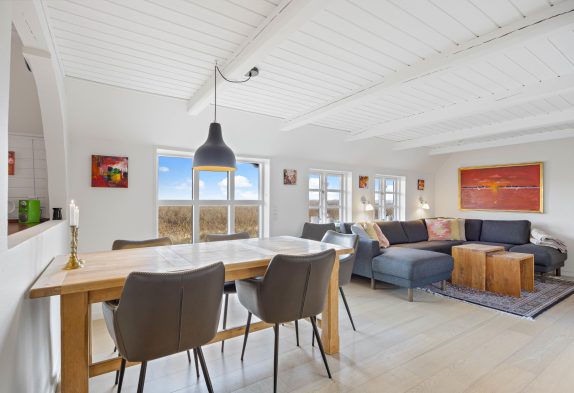 Klitgårdens hjerte er uden tvivl det store opholdsrum, der forbinder køkkenet med spise- og dagligstuen. Det er et fantastisk rum, der indbyder til timevis af familiehygge, madlavning, sjove spil eller blot fordybelse i en god bog. Og gerne med lyden af den knitrende brændeovn i baggrunden. I stuen er der et stort fladskærms-tv med mulighed for tilslutning af jeres egen medbragte spillekonsol, ligesom I også finder SAT-modtager, DVD-afspiller, radio og CD-afspiller her. Derudover er der også trådløst internet til fri afbenyttelse.