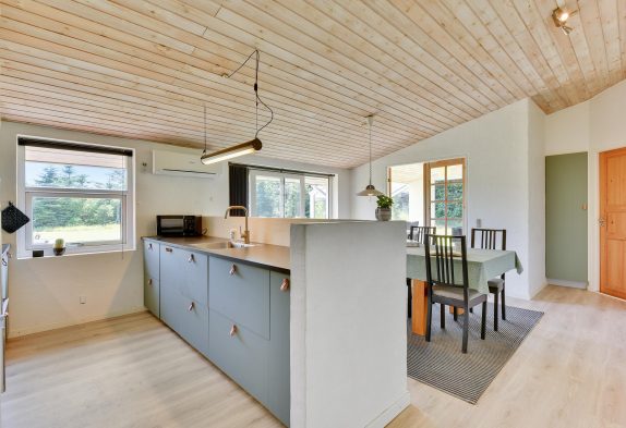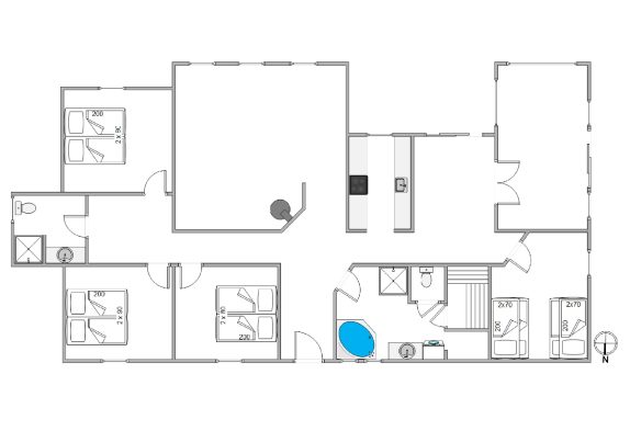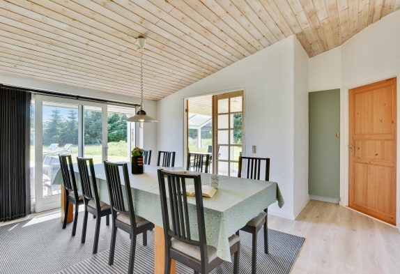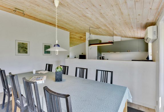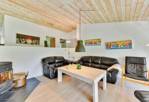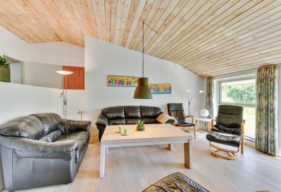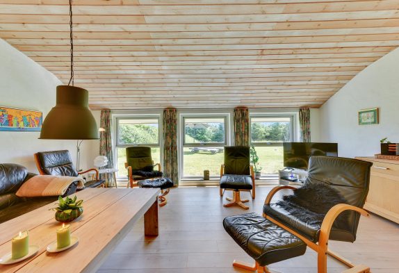 Huset på P Snejkers Vej er lyst og indbydende. Der er højt til loftet, hvilket bidrager til at øge husets rummelighed yderligere. I den nedsænkede stue kan I virkelig slappe af. Den er indrettet med gode møbler, fladskærms-tv, DVD, radio og CD-afspiller og trådløst internet. I et hjørne i stueafdelingen står en skøn brændeovn, der virkelig formår at skabe den helt rigtige sommerhusatmosfære. Det hyggelige sommerhus er udstyret med et flot og moderne køkken med fine detaljer. Køkkenet fremstår lyst og velholdt og er godt udstyret med blandt anet opvaskemaskine, køleskab med 60 liters frysekapacitet samt mikroovn. I direkte forbindelse med køkkenet er spisekrogen, hvor der er god plads omkring bordet. Både når aftensmaden skal indtages og kortene til 500 skal blandes. Der er 10 sovepladser i huset fordelt på fire gode og lyse soveværelser. Tre af disse værelser er indrettet med komfortable dobbeltsenge, mens det sidste værelse er udstyret med to køjesenge. Herudover er der et stort badeværelse med spa, sauna, vaskemaskine, tørretumbler og opvarmet flisegulv samt et mindre gæstetoilet med bruseniche.