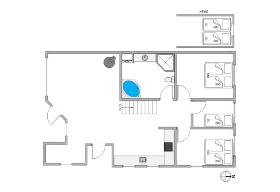 Sommerhuset har derudover 3 soveværelser og 1 badeværelse. På badeværelset står et lækkert spabad klar til jer, hvor I kan læne jer tilbage og slappe fuldstændig af i det varme boblende vand. Der findes en gennemstrøms vandvarmer, så man altid har varmt vand – selvom man fylder spabadet, kan man stadig tage et varmt brusebad.