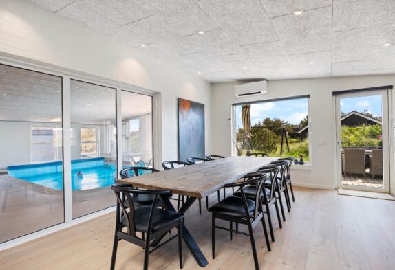 Trænger I til et afslappende afbræk fra hverdagen, hvor komfort, hygge og wellness gerne må være kodeordene for jeres ferie? Så er I landet det helt rigtige sted. For i det lækre poolhus på Marehalmen 27 i Søndervig får I både pool, udendørs spabad, naturgrund og hyggelige omgivelser. Der er plads til 10 overnattende gæster i huset samt 2 hunde, hvilket gør feriehuset til den perfekte ramme for den udvidede families ferieplaner.
