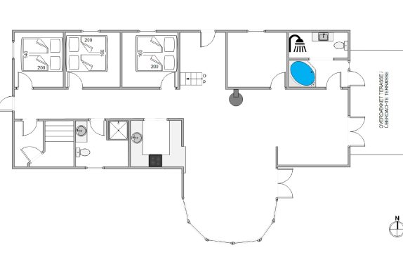 På den store terrasse kan I virkelig gå sommeren i møde på allerbedste manér. Den er nemlig udstyret med gode havemøbler, liggestole og kuglegrill. Terrassen er fuldkommen lukket, så I kan med ro i sjælen lade både hunde og børn lege frit på området. Faktisk er gyngestativet rykket ind i det indhegnede område, så børnene kan lege fuldkommen ugeneret. Terrassen løber fra syd – hvor den er delvist overdækket – og hele vejen mod vest. Alt efter hvor vinden kommer fra, er der altid en god mulighed for at finde en hyggelig krog i læ for vind og vejr.