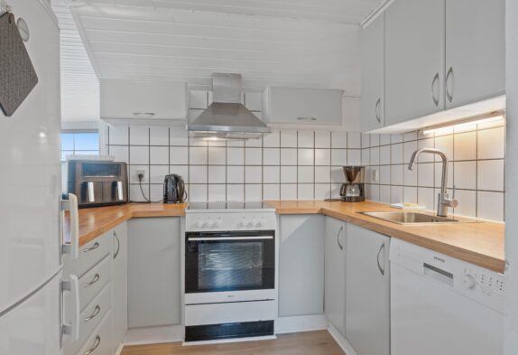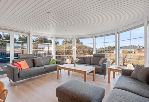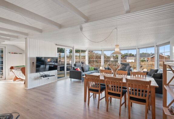 Når I træder indenfor i sommerhuset på Jakob Bondes Vej 47, vil I blive mødt af et smukt lysindfald fra de store vinduespartier i karnappen. Det er svært ikke at føle sig bjergtaget af udsigten. Derfor vil I formentlig også få en akut trang til at slå jer ned i de behagelige flydersofaer og blot betragte de smukke udendørs omgivelser. Det store køkkenalrum, hvor stue, køkken og spisekrog forenes, er uden tvivl husets hjerte. I er derfor aldrig langt fra hinanden, selvom I er i færd med forskellige gøremål. Én kan tilberede aftensmaden i køkkenet, en anden sidde fordybet med næsen i en bog, mens en tredje lægger puslespil ved spisebordet.