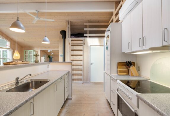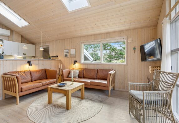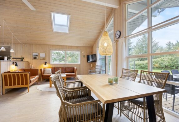 | På en dejlig naturgrund i det vestjyske ligger et skønt sommerhus, der er som skabt til gode ferieminder. Her der plads til 5 personer, der drømmer om en ferie i hyggelige omgivelser. Lys og imødekommende indretningSå snart I træder indenfor på Klitrosevej 18, vil I uden tvivl føle jer hjertelig velkommen. For den lyse og indbydende rumlighed tager imod sine gæster med åbne arme. Sommerhuset består af et stort opholdsrum med loft til kip, hvor der både er dagligstue, spisestue og køkken. Her er masser af luft og albuerum, men alligevel har I følelsen af at være tæt på hinanden. Opholdsrummet bader i lys, der trænger ind igennem det store vinduesparti for enden af gavlen. Herfra kan I betragte haven og naturen udenfor. Terrassen ligger lige uden for vinduerne, så uderummet føles som en naturlig forlængelse af opholdsrummet. Foruden det store opholdsrum er sommerhuset indrettet med yderligere 2 værelser med dobbeltseng, samt en hems med 2 sovepladser. Et oplagt sovested for familiens yngste, og der vil med sikkerhed være rift om pladserne. Stor træterrasse på ugeneret naturgrundOmgivelserne på Klitrosevej er ideelle for familieferien. Her er der masser af udendørsrum, hvor både børn og voksne kan slå sig løs. Den dejlige naturgrund består af en stor, grøn plæne, der ligger belejligt omgivet af træer og buske. Det afskærmer grunden, så I føler det som om, I befinder jer i jeres eget lille ferieparadis. Der er god grund til at nyde naturen og omgivelserne fra adressen i Lodbjerg Hede. For den store terrasse er som skabt til alverdens sysler og gøremål for familiens medlemmer. Her kan I smække benene op og nyde solens stråler, mens I nyder de liflige dufte fra bøfferne på grillen. Og familiens yngste kan lege med racerbiler eller køre med dukkevogne til den helt store guldmedalje. I skal heller ikke frygte for, at dage med regnvejr skal sætte en kæp i hjulet på jeres udendørsaktiviteter. Terrassen er nemlig delvist overdækket, så I uden problemer kan tænde op for grillen på gråvejrsdage. Der er også etableret en udebruser. Udebruseren kan I benytte i månederne fra april til november. Klitrosevej 18 – naturskønt sommerhus i Lodbjerg HedeKlitrosevej 18 ligger i det idylliske område Lodbjerg Hede, et betagende hedelandskab med rige muligheder for at nyde naturen i fulde drag. Her finder du ro og smukke omgivelser – ideelt til afslapning og udendørsliv. Et af områdets højdepunkter er det ikoniske Lodbjerg Fyr, hvorfra du kan opleve en storslået udsigt over landskabet og havet fra toppen af fyret – en oplagt destination til en udflugt. Fra sommerhuset er der kun 3700 meter til et velassorteret supermarked, hvilket gør det nemt og bekvemt at klare dagligvareindkøbene under ferien. Derudover ligger Vesterhavet blot 2.000 meter fra adressen – perfekt til både friske dukkerter og lange gåture langs stranden.   |