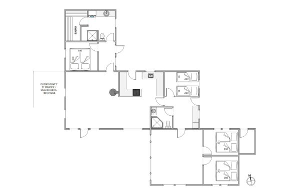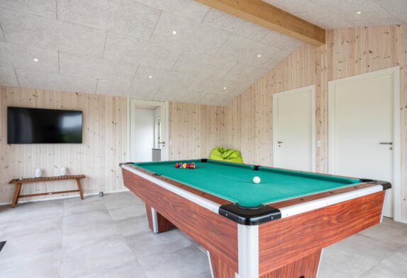 Alrummet er det perfekte samlingssted på ferien, hvor I kan være sammen om madlavning og spisning efterfulgt af sjove spil og gode film. I ægte sommerhusstil er der en brændeovn i alrummet, der sørger for ekstra hyggelig stemning. For dem der elsker indendørs aktiviteter, finder I i sommerhuset et lille aktivitetsrum udstyret med et billardbord.
