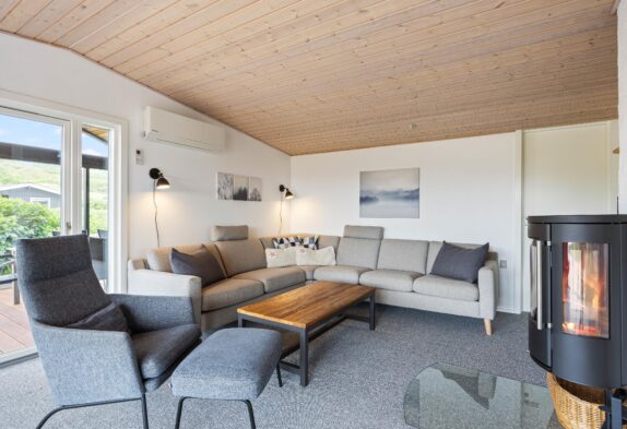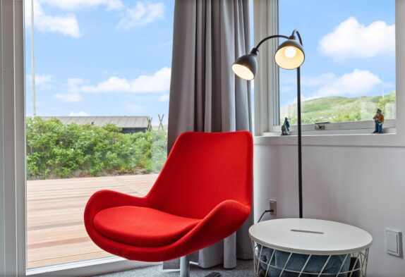Fra stuen er der adgang til en skøn overdækket terrasse, hvorfra I har udsigt mod det smukke klitlandskab i Hvide Sande. Det perfekte sted til en stille stund med en god bog eller en varm kop kaffe.