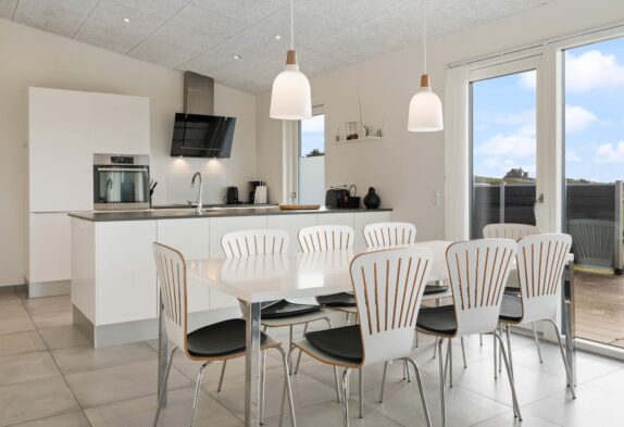 Alt i huset har karakter af god smag og udsøgt kvalitet. Men det er ikke kun en fryd for øjet – også for sjælen. For pulsen falder naturligt et par slag, når I slår jer ned i de behagelige møbler og nyder det smukke vue ud over vandet og klitterne, der strækker sig langs Søndervig Strand i syd og til op forbi Houvig i nord.