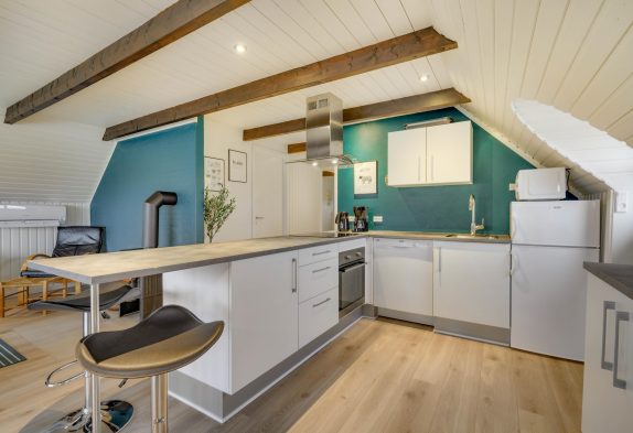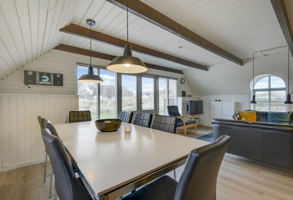 Hjertet og samlingsstedet i sommerhuset er alrummet, hvor køkken og stue er forenet. I den hyggelige og moderne indretning er der lagt op til mange dejlige feriestunder for hele familien eller parret. Køkkenet er velindrettet med god plads til at kokkerere mange lækre sager, og opvaskemaskinen tager opvasken for jer.