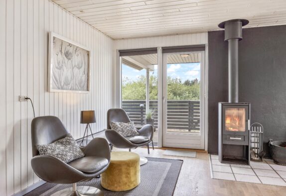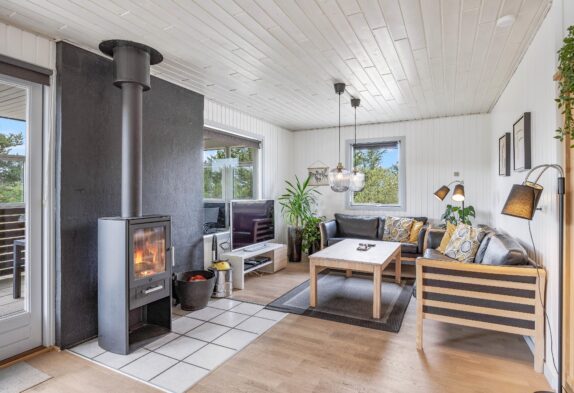 I opholdsrummets sofahjørne er der plads til afslapning. Her kan I smække fødderne op med en god bog i hånden eller streame en spændende film på Smart-tv’et over husets lynhurtige 100/100 Mbit Fiberinternet. Og med den lune brændeovn knitrende i baggrunden er feriestemningen for alvor sikret.