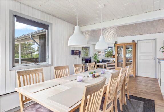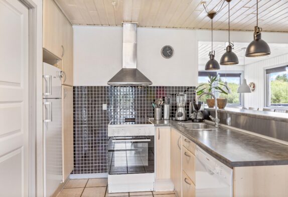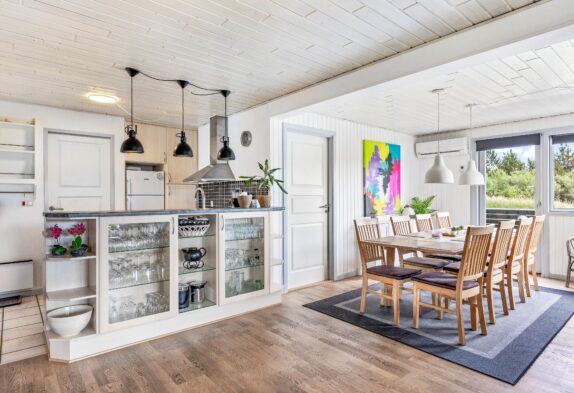På Gransangervej 6 er omgivelserne virkelig skønne, lyse og åbne, og I vil helt sikkert føle jer hjemme straks. Det store opholdsrum, der forener køkken, spisekrog og stue, er husets hjerte og familiens samlingspunkt på ferien. Det flotte veludstyrede køkken har alt, hvad feriekokkene har brug for – inklusiv køleskab med 50 liters frysekapacitet, mikroovn og opvaskemaskine.