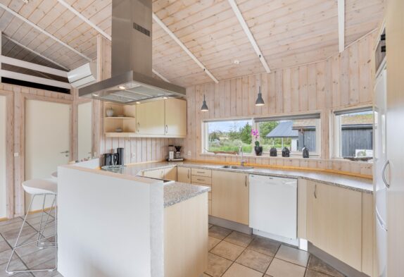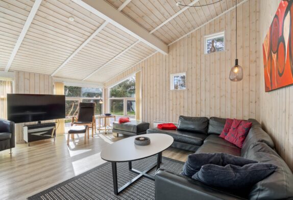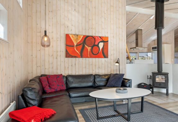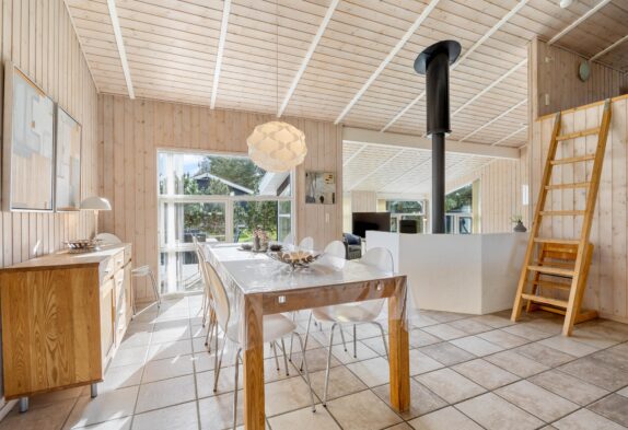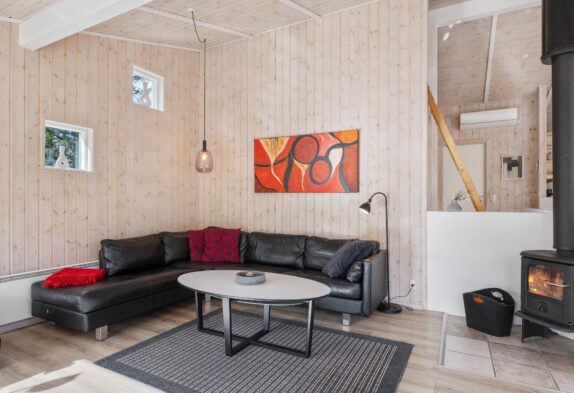 Til sjove og hyggelige feriestunder er opholdsstuen med loft til kip det oplagte sted for jer at samles. Her er der masser af plads til alle feriens gæster, og I kan være sammen om at lave mad, spille spil eller se film. Uanset hvilken ferieaktivitet, I giver jer i kast med, sørger brændeovnen for at sætte prikken over i’et for feriestemningen.
