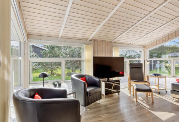 Der er igen tvivl om, at I straks vil føle jer hjemme i sommerhuset på Milevej 40. Det rummelige og lyse sommerhus er indrettet med flotte og komfortable møbler, som I vil finde jer godt tilpas i på ferien. Sommerhuset er indrettet med 4 soveværelser og 1 hems – et sikkert hit blandt feriens yngste gæster. Soveværelserne er fordelt, så der er 2 i hver ende af sommerhuset. I hver ende er der også et badeværelse ved soveværelserne, så sommerhuset er virkelig oplagt til en ferie for 2 familier.