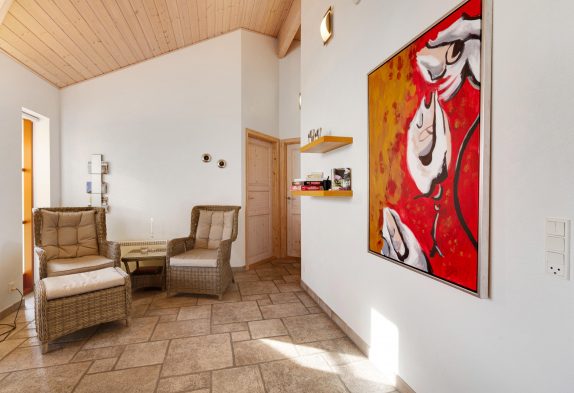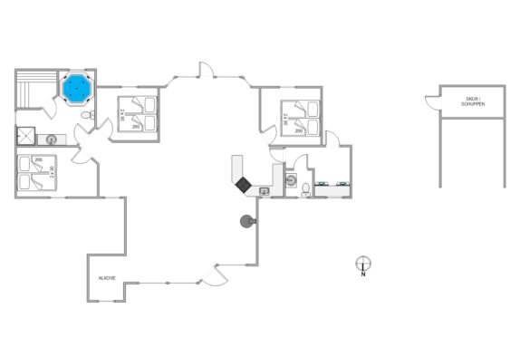 Badeværelset fuldender komforten i sommerhuset og er udstyret med gulvvarme, en tømmespa og en sauna, hvilket giver jer mulighed for at koble helt fra og slappe helt af. Der er også et praktisk gæstetoilet, der sikrer ekstra bekvemmelighed for alle. I entreen finder I både en vaskemaskine og en tørretumbler, hvilket gør det let at holde tøjet frisk under jeres ophold.