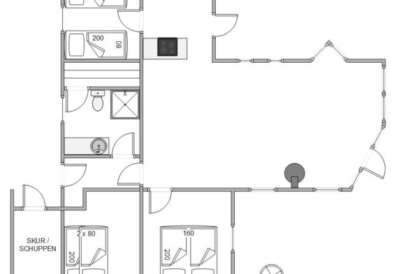 På Sandvej 8 er der både vest- og østvendt terrasse. Fra stuen er der direkte udgang til den afskærmede, vestvendte terrasse. Mens solen står op, kan I sidde på den østlige terrasse, som også er afskærmet, og drikke en kop kaffe. Fra den vestvendte terrasse kan I nyde et lækkert grillmåltid i aftensolen med udsigten til klitterne.