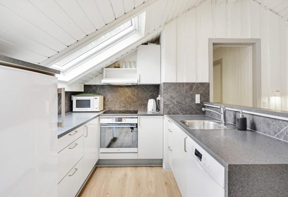 I sommerhuset finder I plads til 5 personer, som kan nyde en dejlig og afslappet ferie i skønne omgivelser. Feriehuset er renoveret i 2021 og er særdeles indbydende. Sommerhuset har lyse gulve samt hvide vægge og lofter. Med loft til kip og ovenlysvinduer er der et rigtig godt lysindfald i køkken-alrummet.