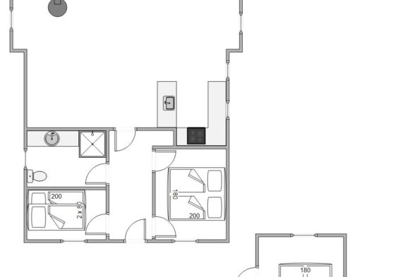 Sommerhuset har 3 værelser, hvoraf det ene ligger i det hyggelige anneks. Der er 2 dobbeltsenge, hvoraf den ene befinder sig i annekset. Børnene kan putte sig i køjesengen, som I finder på det sidste værelse.