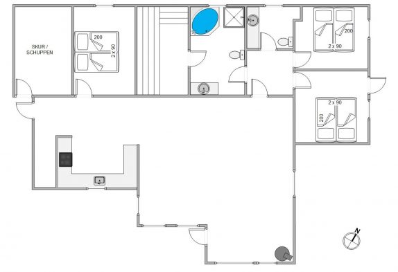 I køkkenet har I alt, I har brug for, når der skal tilberedes lækre måltider på ferien. Opvasken skal I ikke tænke på, for den klarer opvaskemaskinen selvfølgelig. Mens nogle af jer står i køkkenet og klarer madlavningen, kan resten af feriegæsterne hygge sig i stuen. Køkken og stue er forenet i én opholdsstue, så I vil stadig kunne nyde hinandens selskab.
