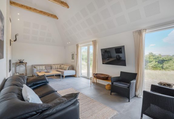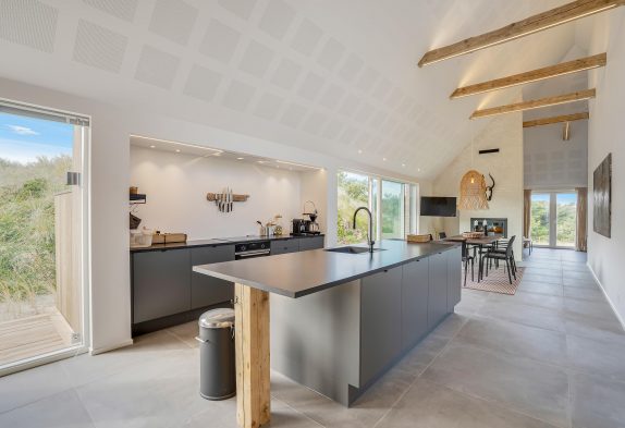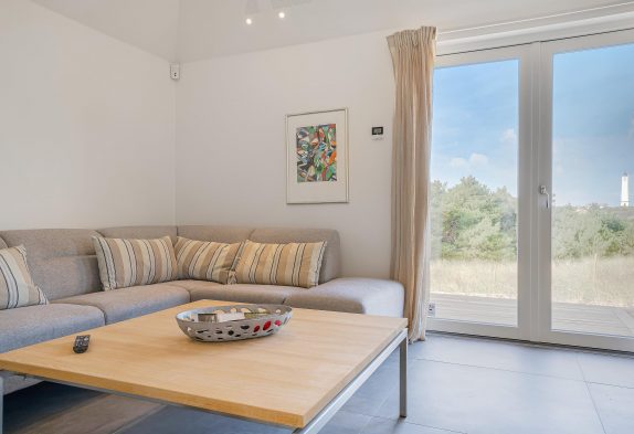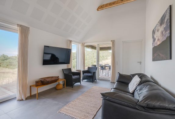 På Klitvej 9 i Blåvand venter jer en afslappende ferie i dette fantastiske, stilfulde og i 2021 nybyggede luksushus med plads til 6 personer. Fra sommerhuset er der kun 200 meter til de brede klitter og den hvide badestrand. Med en udsigt direkte til Blåvandshuk Fyr, får I her en uovertruffet beliggenhed midt i den vestjyske natur. Feiehuset er bygget med hensyn til den specifike natur midt i klitlandskabet, derfor har man efter huset var færdig bygget, genetableret den oprindelig klit der nu ligger mellem husets parkeringspladser og selve huset – lige som en bekræftelse af den enestående beliggenhed i den unikke natur. Dette hus er ikke egnet til gangbesværede, da opgangen til feriehuset foregår via en trappe hen over klitten, som kan være udfordrende for dårligt gående.