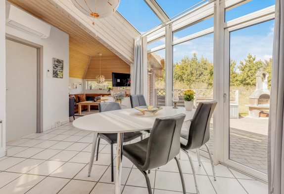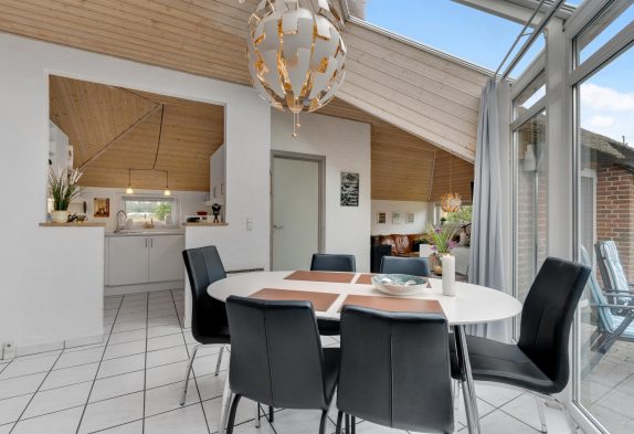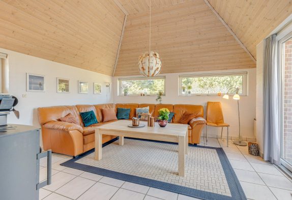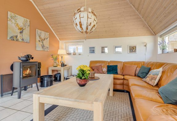 Hjertet i sommerhuset er opholdsstuen, hvor I med garanti vil få mange gode ferieminder sammen. Saml jer i sofaerne til en god film i tv’et eller til et sjovt bræt- eller kortspil omkring spisebordet. Vil I have skruet ekstra op for feriestemningen, tænder I op i brændeovnen.