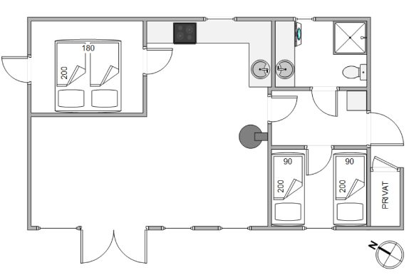 Det hyggelige sommerhus har i 2021 gennemgået en renovering, og I vil hurtigt falde til i de lyse og venlige omgivelser. I det åbne køkkenalrum med stue er der lagt op til masser af samvær og afslapning med brændeovnens knitrende ild som stemningssætter. Grundet den gode planfordeling, er sommerhuset udstyret med to fine og bekvemmelige soveværelser, hvoraf det ene er med en dobbeltseng, og det andet er med to enkeltsenge.