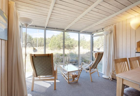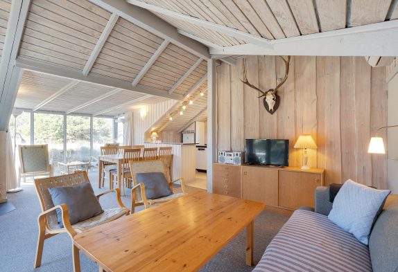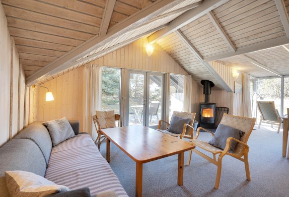 Hygge kommer I ikke til at mangle i sommerhuset på Bakkedraget 13 i Blåvand. Feriehuset har en enkel indretning med lyse trævægge og -lofter, et godt lysindfald og loft til kip, der tilsammen giver en rar ferieatmosfære.