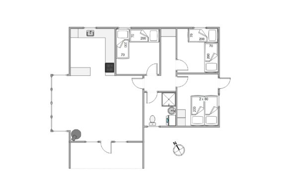 I feriehuset har I 1 badeværelse med gulvvarme og 3 soveværelser. Sommerhuset bliver opvarmet af en energivenlig varmepumpe, der holder temperaturen høj og omkostningerne lave. Feriestemningen kan I skrue i top ved at tænde op i brændeovnen i stuen.