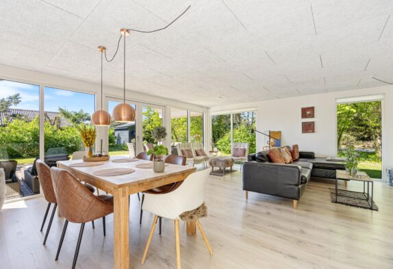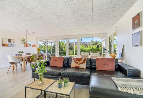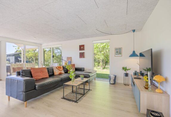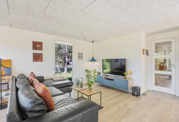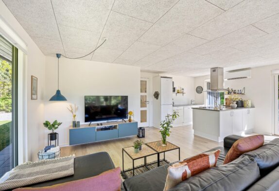 Sommerhuset til 6 personer har et fantastisk opholdsrum, hvor stuen ligger i åben forbindelse med køkkenet. Her er der plads til, at hele familien kan samles til hyggelige stunder. Her er mulighed for at se danske tv-kanaler, men der er også en chromecast til rådighed, så I kan streame jeres yndlingsfilm direkte fra telefonen.