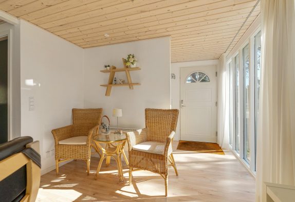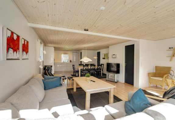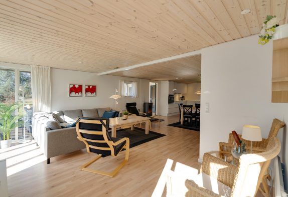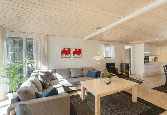 I sommerhuset bliver I mødt af en dejlig ferieatmosfære, som den lyse indretning og det gode lysindfald skaber. I vil straks finde jer godt tilpas i de lyse omgivelser. I det store alrum kan I nyde hinandens selskab over god mad, sjove spil og spændende film. Brændeovnen fuldender den hyggelige feriestemning og sørger for god varme.