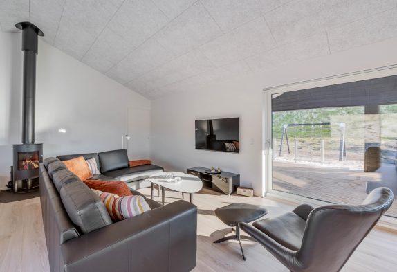 Stue og køkken er i åben forbindelse, og I vil hurtigt føle jer velkomne i det lyse og indbydende alrum. Her har I en brændeovn til rådighed, som gør de mørke aftentimer og regnvejrsdage ekstra hyggelige. Der findes intet bedre end hyggelige stunder med familien, imens I varmer jer ved den knitrende brændeovn.
